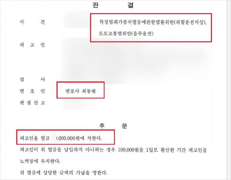 법원은 최동원 변호사의 변론을 받아들여 의뢰인에게 벌금형을 선고했습니다. 음주2회 위반이고, 피해자가 3명인 사건은 벌금형의 선처를 받는 것이 사실상 매우 어려움에도 유의미한 성공 사례를 이끌어낸 것입니다.