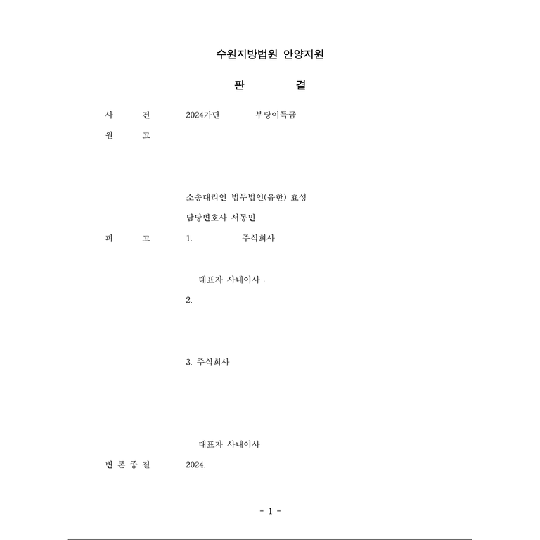 저는 즉각 입금 받은 자들을 피고로 하여 민사소송 부당이득반환청구소송을 제기하였고 법원은 원고 승소 판결을 선고하여 의뢰인은 피해액을 반환받았습니다.