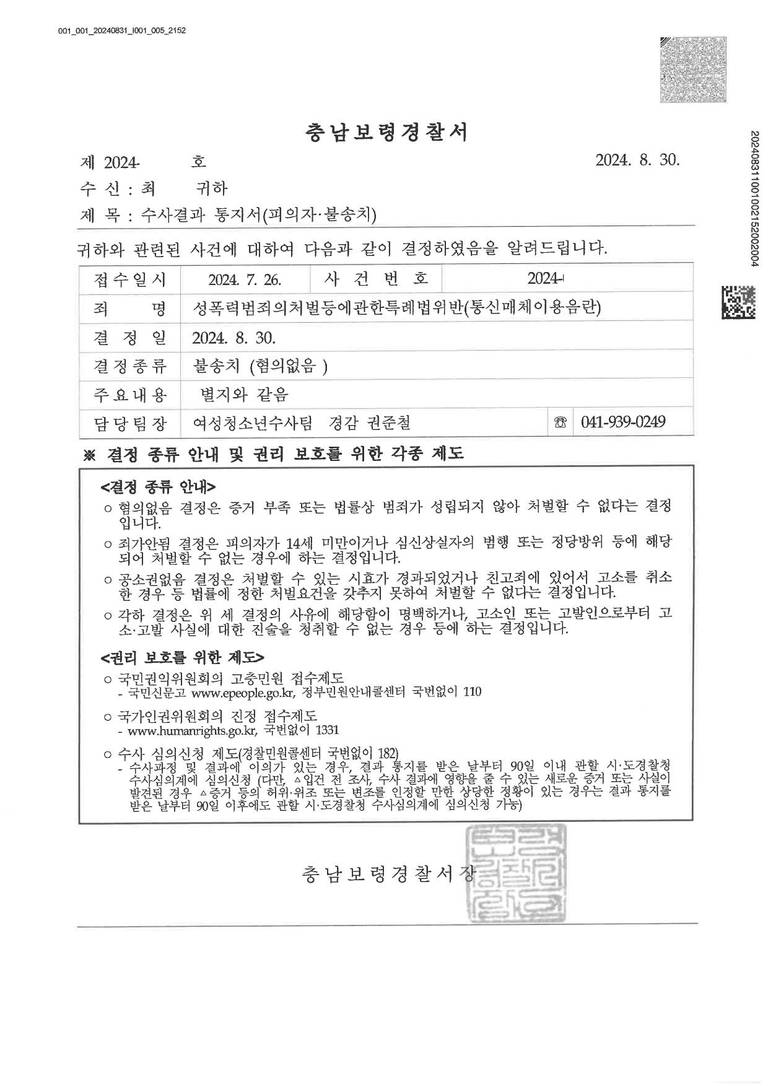 피의자는 불송치로 사건을 잘 마무리할 수 있었습니다.