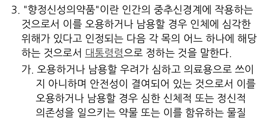 마약류 관리에 관한 법률 제2조 제3호 가목