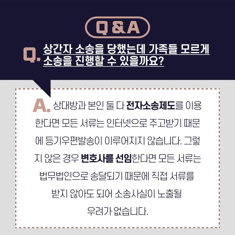 간혹 본인이 상간자 소송을 당했다는 것을 가족이나 지인들에게 알리고 싶어하지 않는 경우가 있습니다.