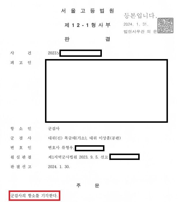 법원은 의뢰인의 혐의에 대해 최종적으로 무죄를 선고하였고, 이어진 항소심 역시 검사의 항소를 기각하면서 무죄가 최종 확정되었습니다.
