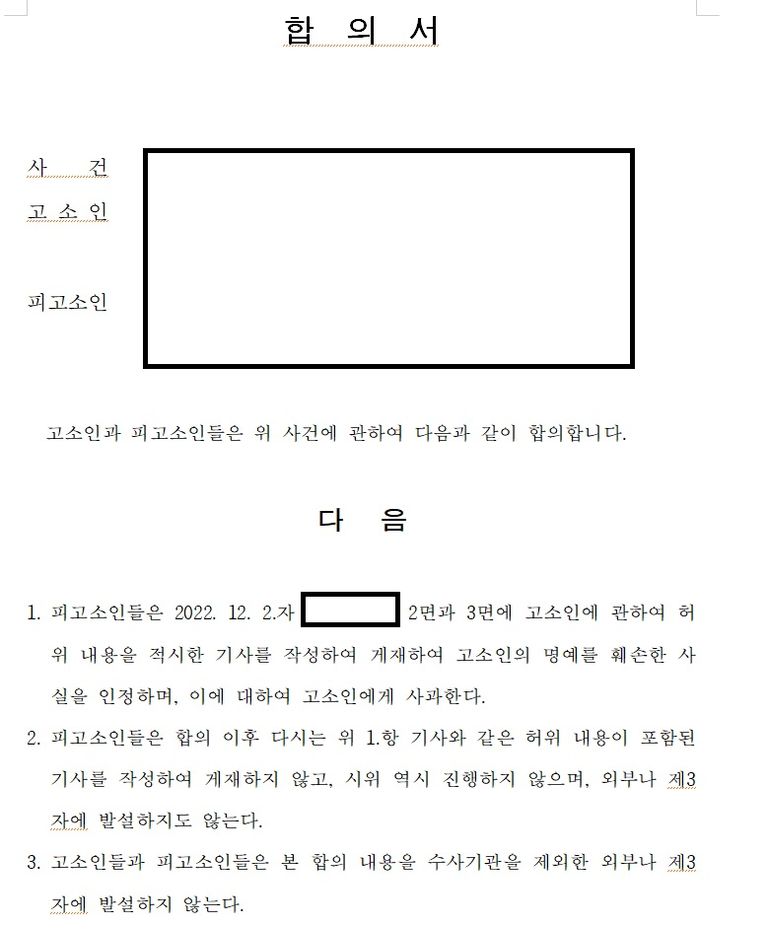 상대방은 피의자 조사 후 본 변호인 및 의뢰인에게 연락해 합의 의사를 밝혔고, 변호인은 의뢰인의 요구 사항을 반영한 합의서를 작성하여 수사기관에 제출하면서 사건이 종결되었습니다.