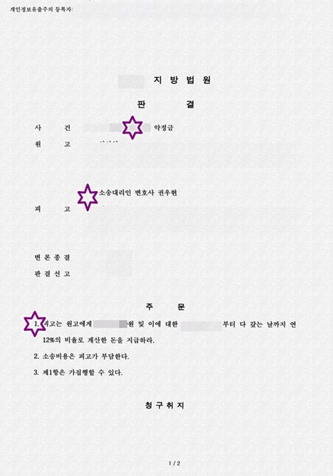 판결금을 자진하여 변제하였다. 다만 소송이자 연 12%가 부담되었을 것이다.