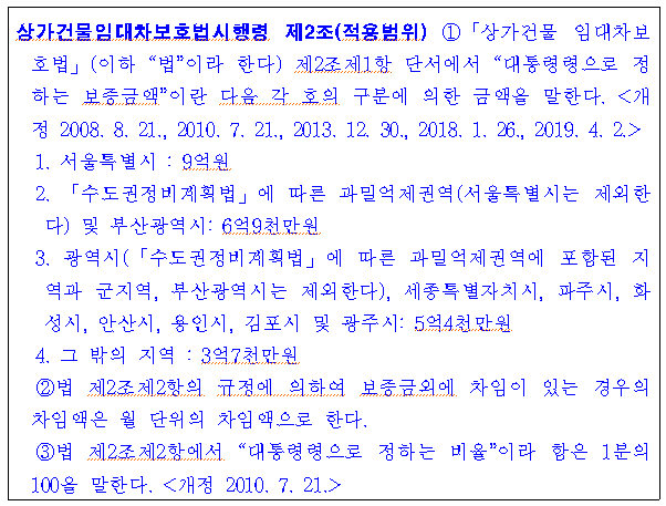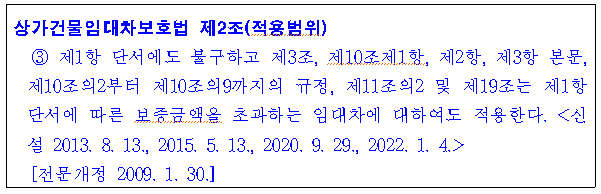 위 규정에 따라 일정 금액을 넘는 경우 상가건물임대차보호법이 적용되지 않습니다.