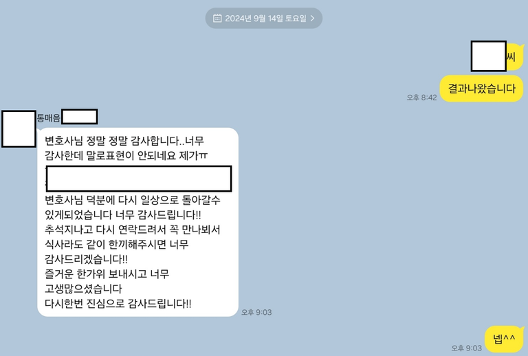 의뢰인분은 저를 신뢰하였고 이러한 신뢰관계가 있었기에 수개월간 경찰조사를 잘 견딜 수 있었습니다.