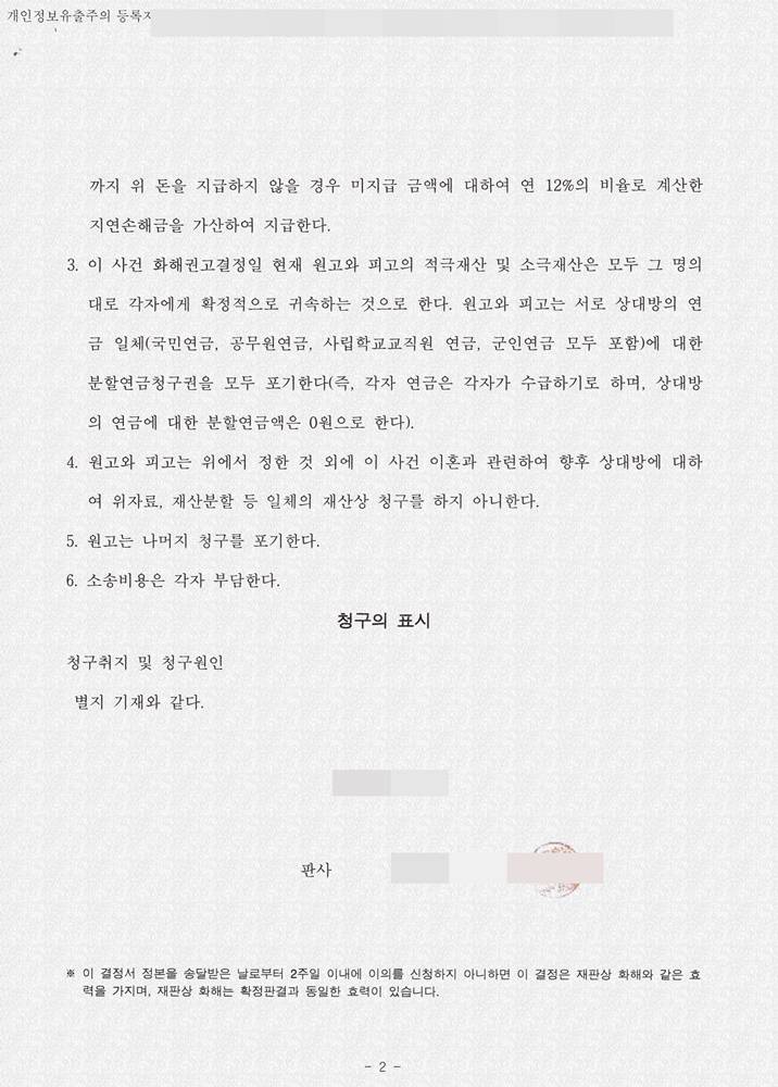 아내측은 변호사의 도움을 받았음에도 위와 같은 이상한 내용의 합의서를 작성한 것이었다.