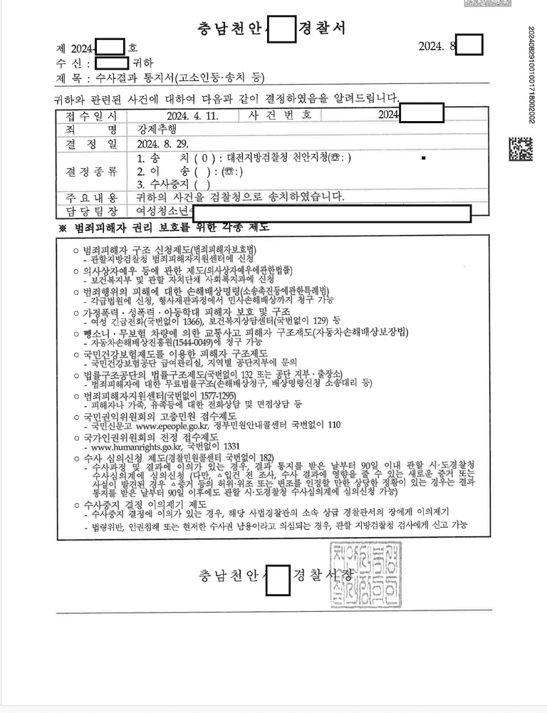 - 또한 증거불충분으로 불송치가 될 뻔한 사건을 뒤집기 위하여 수차례 피해자 의견서를 제출하고 수사관과 통화하여 사건의 방향을 피해자의 시각으로 바라볼 수 있도록 하였습니다.