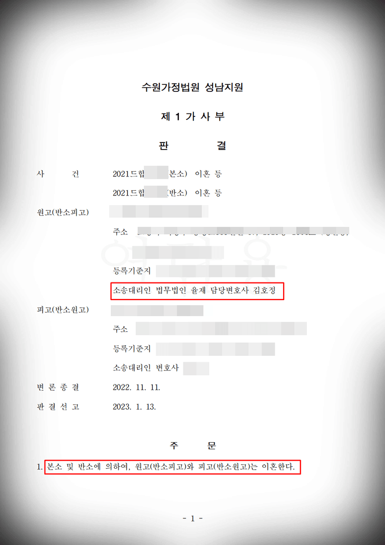 주변의 조언도 도움이 될 수 있지만 그보다는 이혼 전문 변호사를 통해 사안을 해결하시는 것을 추천드리는 이유입니다.