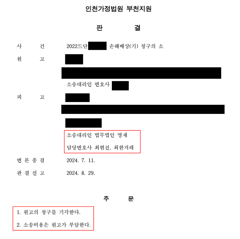 3. 결과원고의 청구를 기각한다는 판결이 나옵니다.