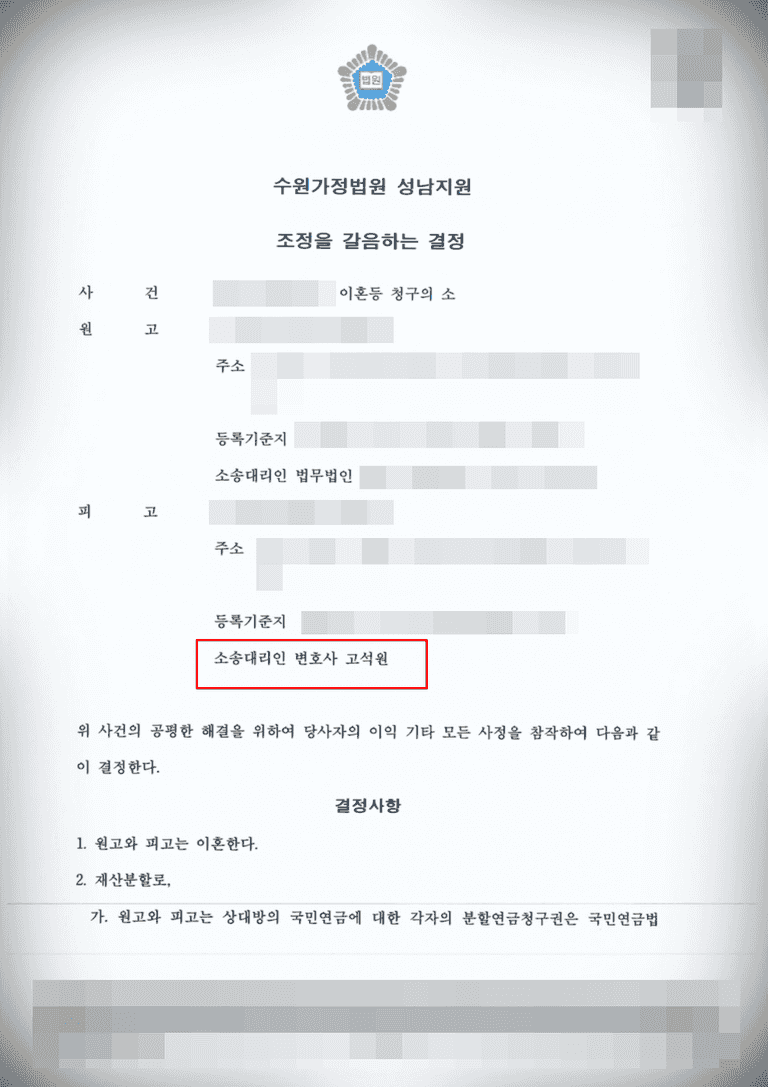 3. 아내 측의 터무니 없는 주장과 요구에 대한 합리적이고 상식적인 합의 및 신속한 이혼을 통해 당사자의 심신적 피로를 최대한 줄이기 위해 조정 이혼 적극 활용