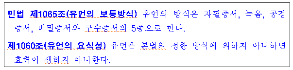 법원은 유언자의 진의를 명확히 하고 그로 인한 법적 분쟁과 혼란을 예방하기 위한 것이므로, 법정된 요건과 방식에 어긋난 유언은 그것이 유언자의 진정한 의사에 합치하더라도 무효라고 보고 있습니다(대법원 2006. 3. 9. 선고 2005다57899 판결 등 참조).
