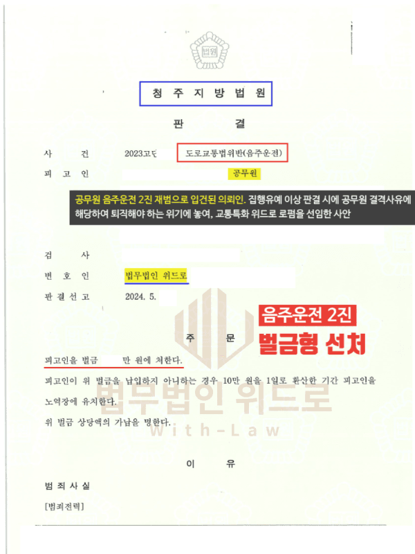 공무원인 의뢰인이 음주운전 2진으로 적발되어 재판에 회부된 사안