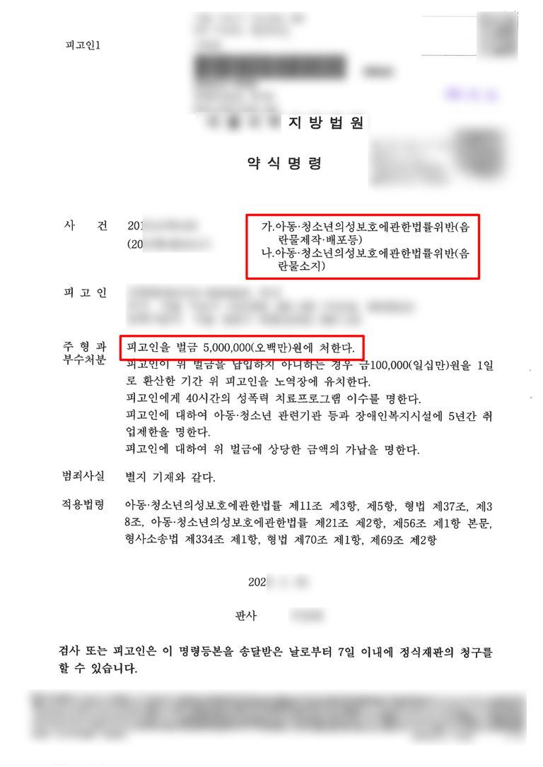 2. 아청물을 다크웹 사이트에 업로드하여 아청물 배포 혐의.