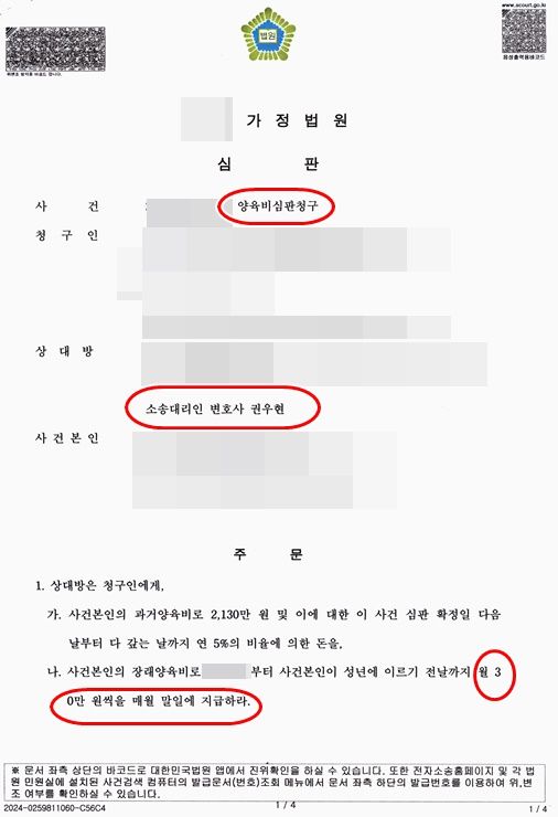그런데 아래 사건은 양육비심판청구 사건에서, 상대방을 소송대리하여, 양육비부담의무자의 경제적 사정, 사건본인