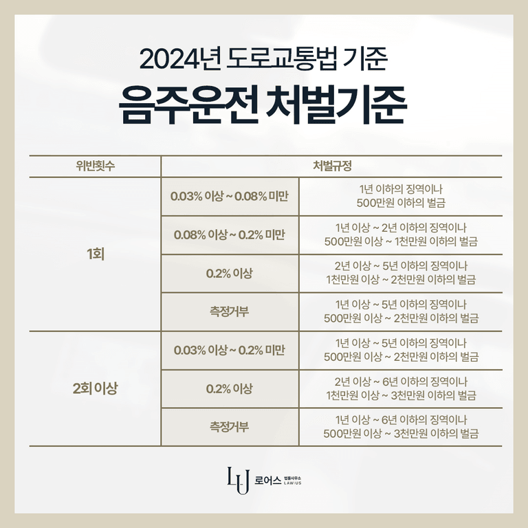 혈중알코올농도에 따른 처벌 수위