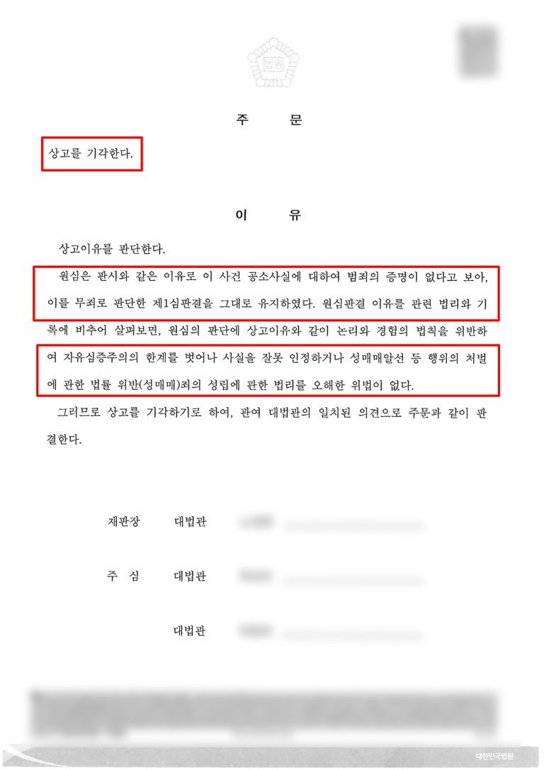 2. 성매매 무죄 판결 확정.