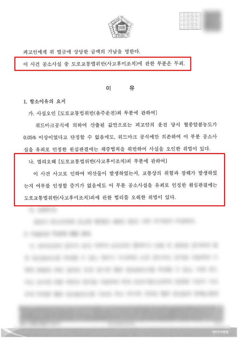 5. 음주운전은 유죄였으나, 사고후미조치 무죄로 택시 면허 유지.
