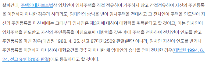 임대인 동의를 얻은 전대라고 하더라도 2가지 경우가 있습니다. 부모님이 일단 전입신고를 하고, 자녀에게 전대하는 경우, 부모님의 전입신고 없이 바로 전대하는 경우입니다. 혹시 첫번째 경우만 대항력이 발생할까요?