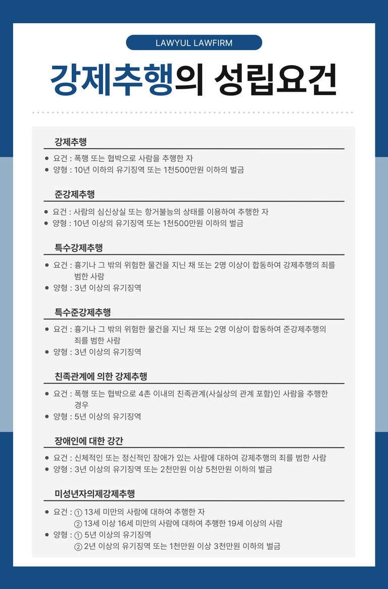강제추행은 일방적으로 합의하지 않은 신체적 접촉을 하여 혐오감, 증오감, 성적 수치심을 유발하는 행위를 말합니다.