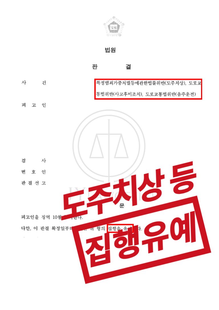 본 사건의 의뢰인은 술에 취한 상태로 승용차를 운전하여 사고를 유발하였고, 그 후 피해자들을 구호하는 등 필요한 조치를 취하지 아니하고 그대로 도주하였습니다. 이에 '도주치상', '사고후미조치' , '음주운전' 혐의를 받은 의뢰인은 본 JY법률사무소를 찾아 사건을 정식 의뢰해 주셨습니다.