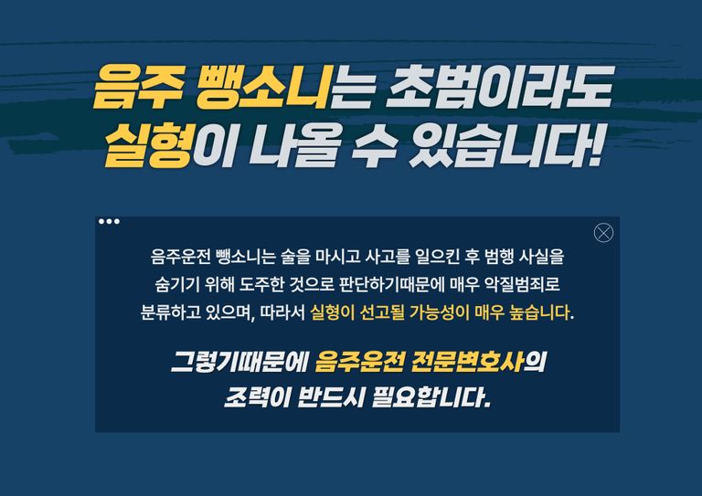 따라서 음주 뺑소니는 실형의 가능성이 매우 높아집니다.