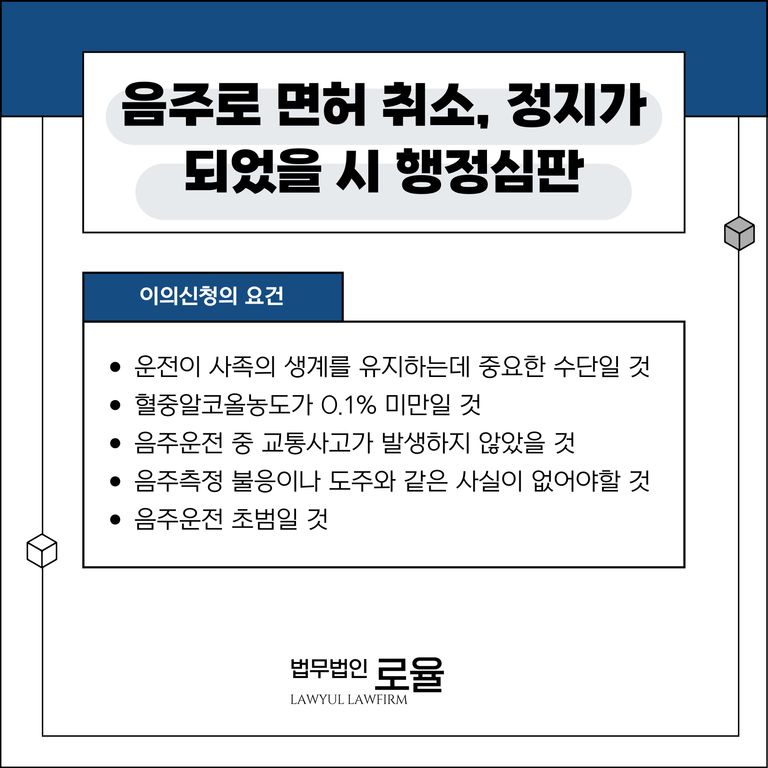 따라서 이의신청을 할 수 있는 자격과 기준이 된다면 면허취소처분에 대한 구제가 가능합니다.
