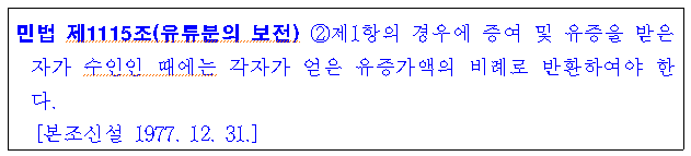 ”증여는 상속개시 이전에 이미 상속재산으로부터 일탈하고 있는데 반하여, 유증은 상속개시에 의하여 비로소 효력이 생기므로, 거래의 안전이라는 관점에서 볼 때 유증을 우선적으로 반환시키는 것이 합리적이기 때문이다. 사인증여의 경우에는 유증의 규정이 준용될 뿐만 아니라 그 실제적 기능도 유증과 달리 볼 필요가 없으므로 유증과 같이 보아야 할 것이다(대법원 2001. 11. 30. 선고 2001다6947 판결).“