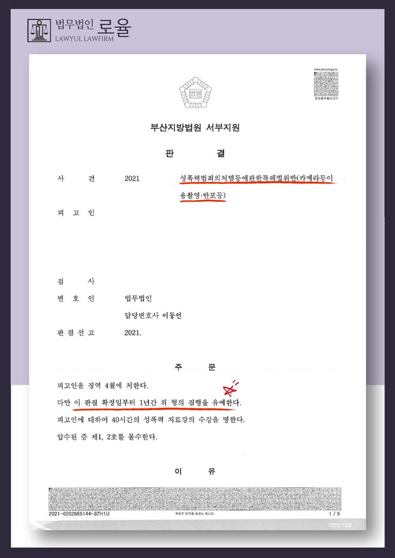 이러한 법무법인 로율 이동언 대표변호사의 노력으로 인해 징역형에 따른 집행유예 판결을 이끌어낼 수 있었고, 긴 과정을 겪은 이후에야 비로서 의뢰인은 평범한 일상으로 돌아갈 수 있게 되었습니다.