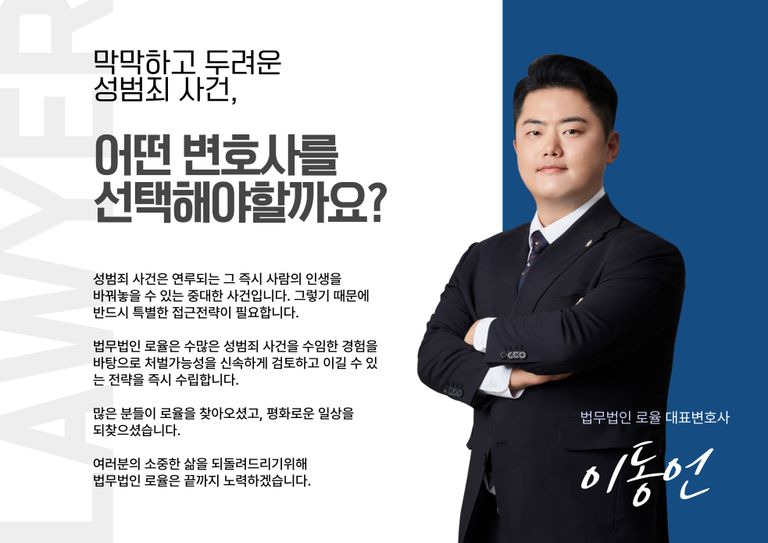법무법인 로율의 이동언 변호사는 성범죄 전문 변호사로서 전문가다운 노련함으로 사건의 실타래를 확실하게 풀어드리겠습니다.