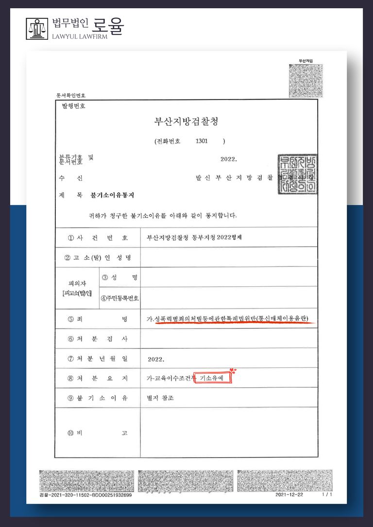 통신매체이용음란죄 사건 기소유예 처분 받은 실제 사례