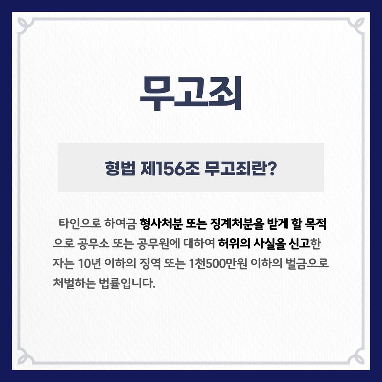 무고죄는 타인이 형사처분 혹은 징계를 받게 할 목적으로 허위의 사실을 신고함으로써 성립하는 범죄입니다.