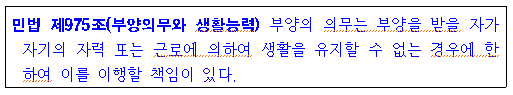 부양의무는 부양받을 자가 혼자 힘으로 생계유지가 불가능할 때 생깁니다.