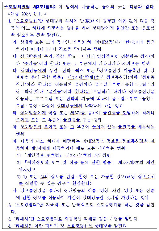 스토킹은 다른 사람을 따라 다니며 괴롭히는 것을 말합니다.