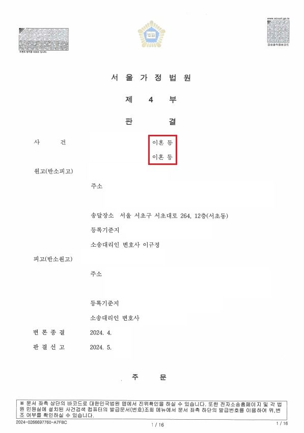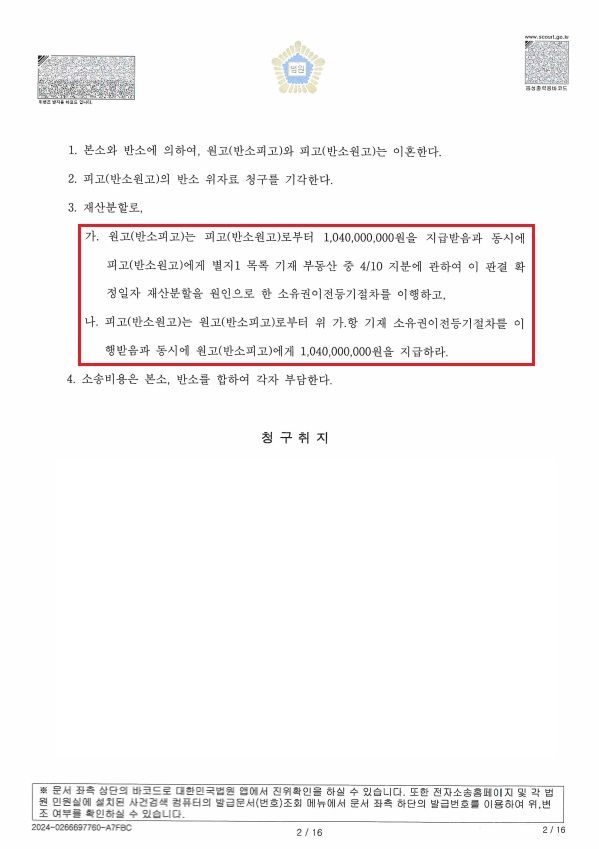 안녕하세요, 황혼이혼 전업주부 재산분할 10억 4천만원 해결사례 소개해드립니다.