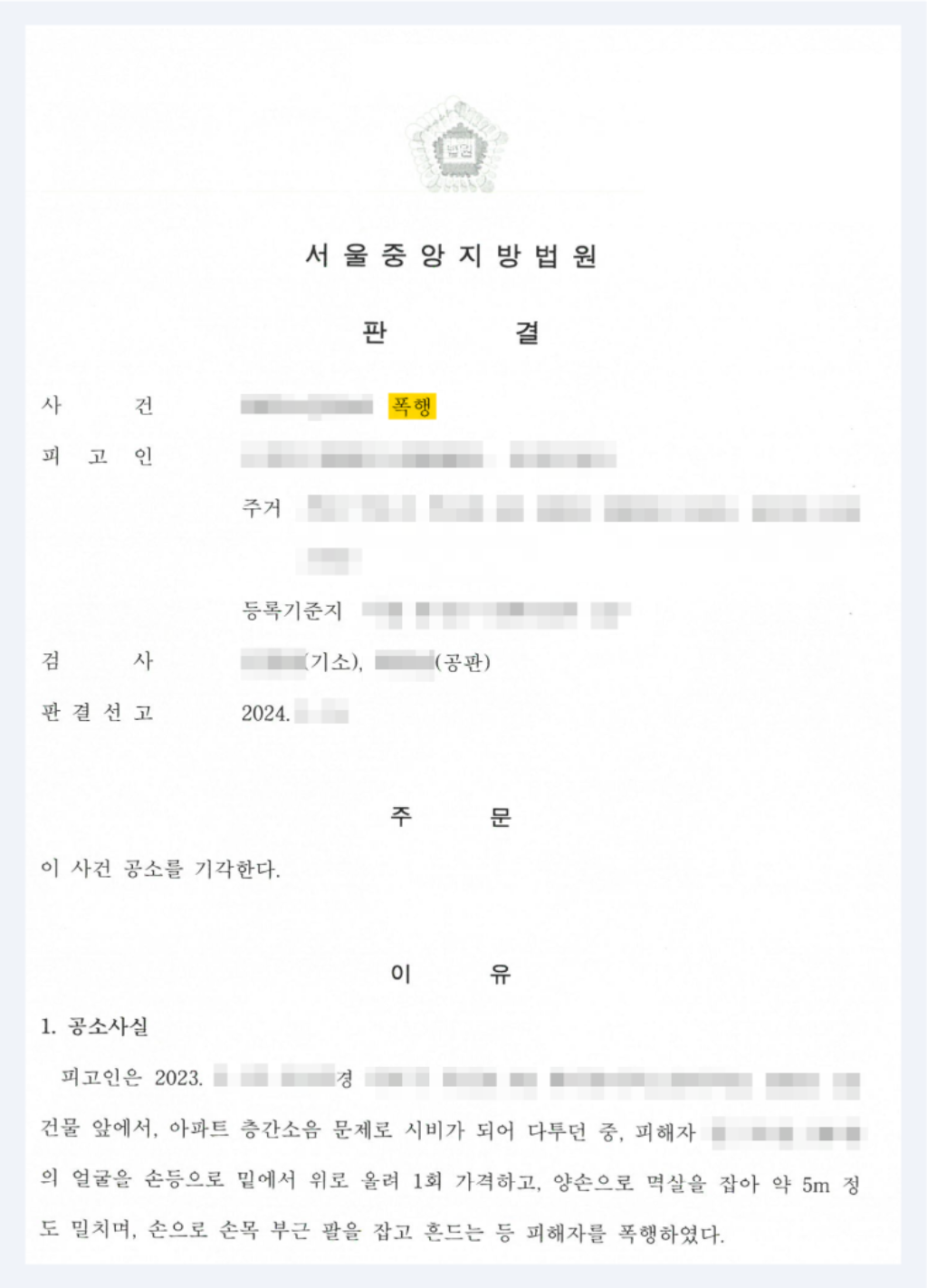 02. 폭행으로 번진 아파트 층간 소음 사건, 김연수 변호사의 조력
