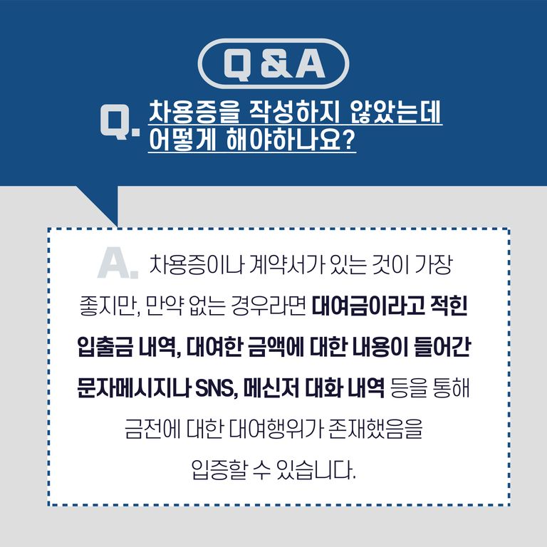 하지만 금전을 빌려줄 때 차용증이나 계약서를 작성하지 않는 분들도 많이 계십니다.