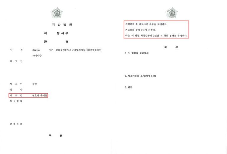 ○ 사건개요: 의뢰인은 우연히 보이스피싱 범죄의 인출책으로 가담하게 되었고, 1심에서 징역형 실형을 선고받아 구치소에 수감 중이었으나, 변호인의 조력을 통하여 1심에서의 형량을 줄이고 항소심에서 집행유예를 받을 수 있었습니다.