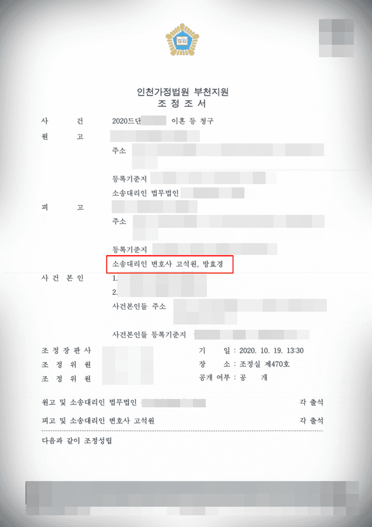 1. 많은 시간이 소요되는 소송의 단점을 부담스러워 하는 의뢰인을 위해 조정이혼을 통한 신속한 이혼 진행 결정