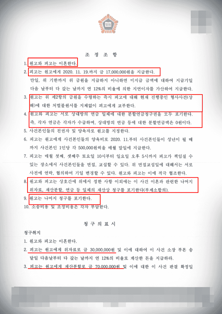 2. 배우자의 무리한 요구 사항에 대하여 의뢰인이 받아들일 수 있는 합리적인 내용으로 조정 합의