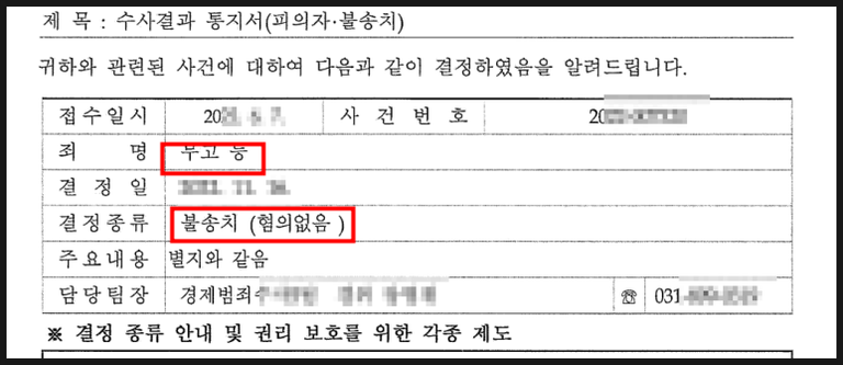 경찰은 제가 제출한 의견서와 입증자료의 내용을 반영하여 의뢰인의 고소가 허위사실이라고 볼 수 없고 증거가 불충분하다고 하여 불송치 결정을 내렸습니다.