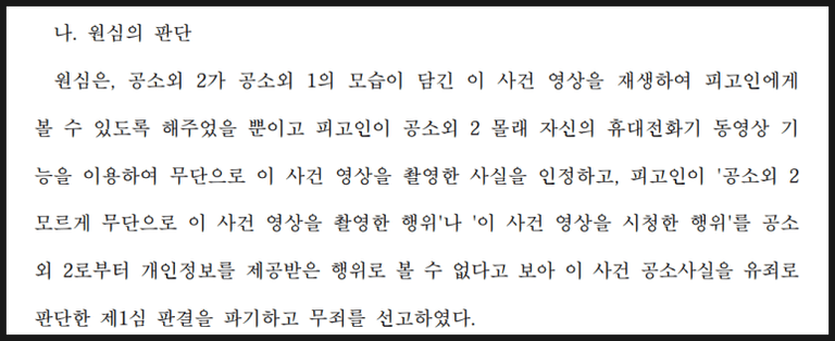 즉, 원심은 개인정보의 '제공' 및 '제공받은 행위'를 매우 좁게 해석했습니다. 물리적으로 영상 파일을 전달받지 않는 한, 개인정보가 제공되었다고 볼 수 없다는 입장을 취한 것입니다.