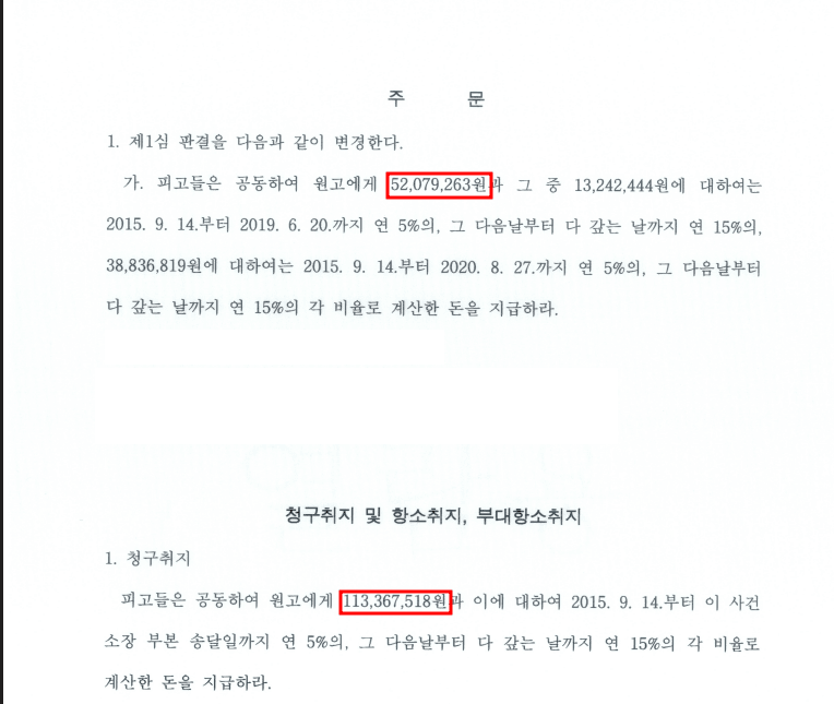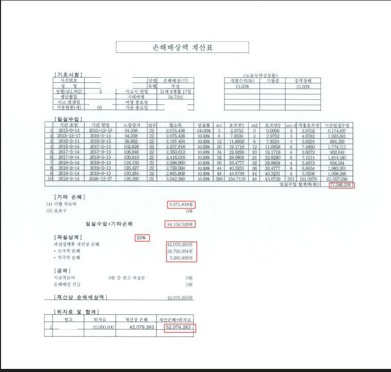 손해배상액 : 약 5,200만 원(위자료 1,000만 원 포함).