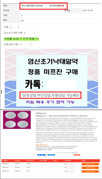 미프진 판매광고(식품의약안전처 보도자료 중 인용)