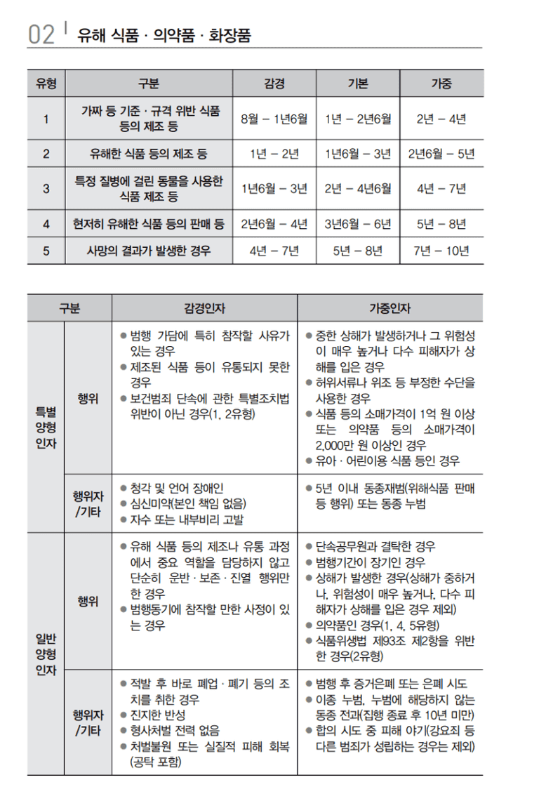 식품보건범죄 양형기준