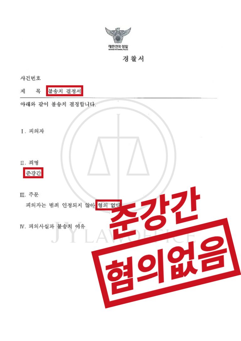 이와 같은 변호인의 조력에 따라, 의뢰인은 준강간 혐의에 대하여 '혐의없음' 처분을 받고 사건을 무사히 종결시킬 수 있었습니다.