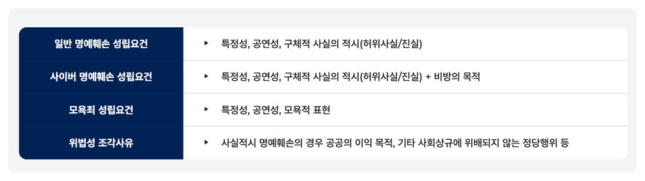 하지만 명예훼손 고소를 위해서는 검토해 볼 법리적 요건이 존재합니다.
