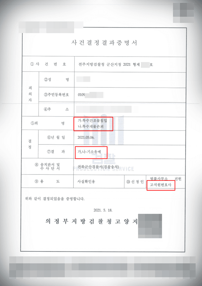 당시 의뢰인의 항변과는 달리 그 행위들은 명백히 형법상 특수재물손괴와 특수건조물침입이 성립할 가능성이 매우 높아 보였기에 신속하게 수임하고 사건에 임했던 기억이 납니다.