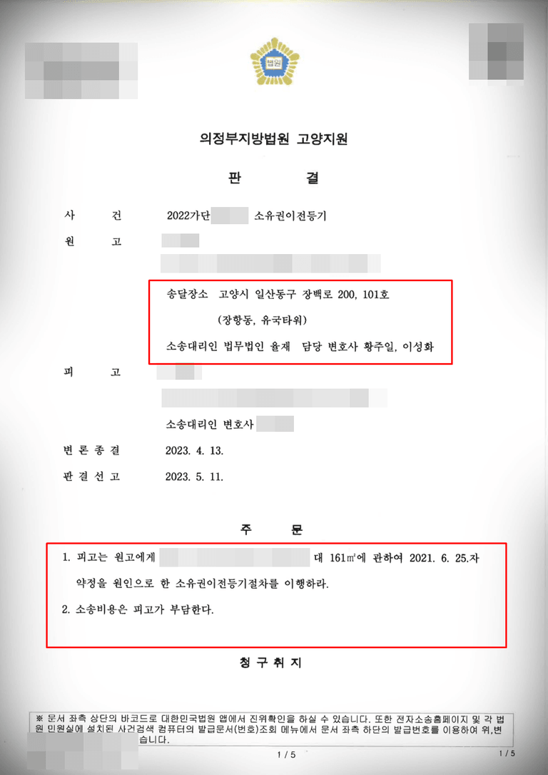 이후 피고는 임의경매를 통해 해당 토지에 관한 소유권 이전 등기를 자기 명의로 마쳤고, 원고에게 약속한 등기 이전을 계속 미루는 상황이었는데요. 이에 의뢰인께선 해당 토지에 대한 소유권 이전에 관한 소송을 제기하기 위해 저희 율재를 찾아주셨습니다.