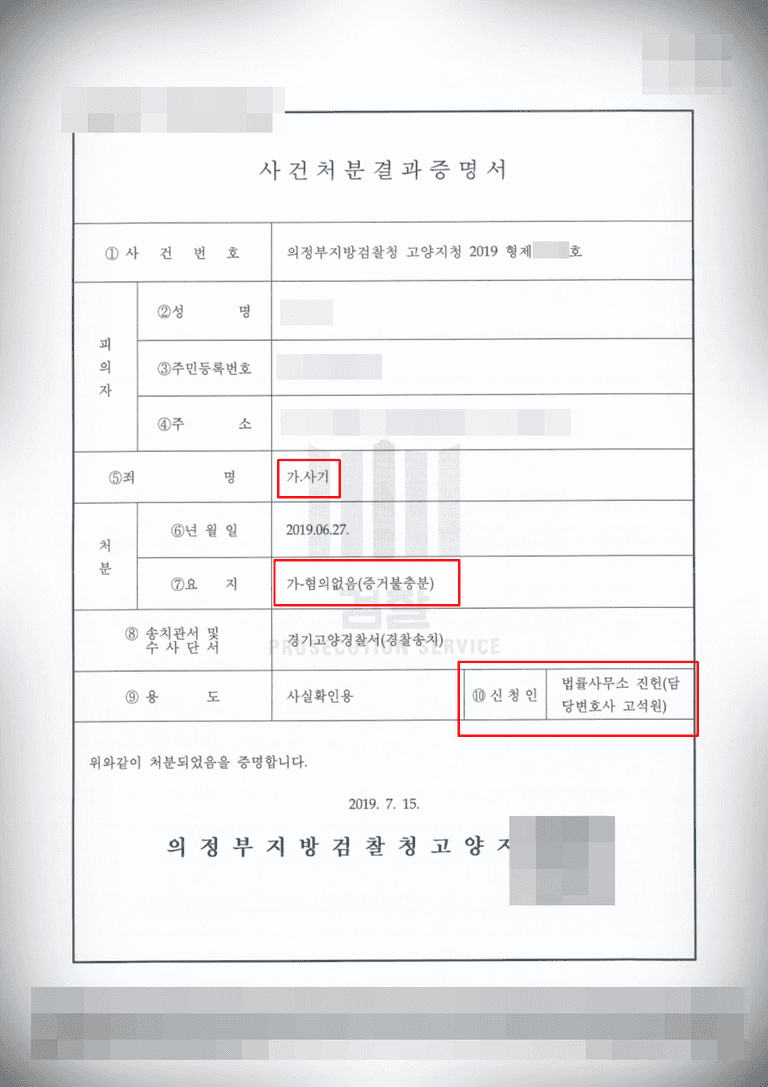 검찰 단계 혐의 없음으로 방어하였습니다.